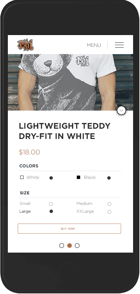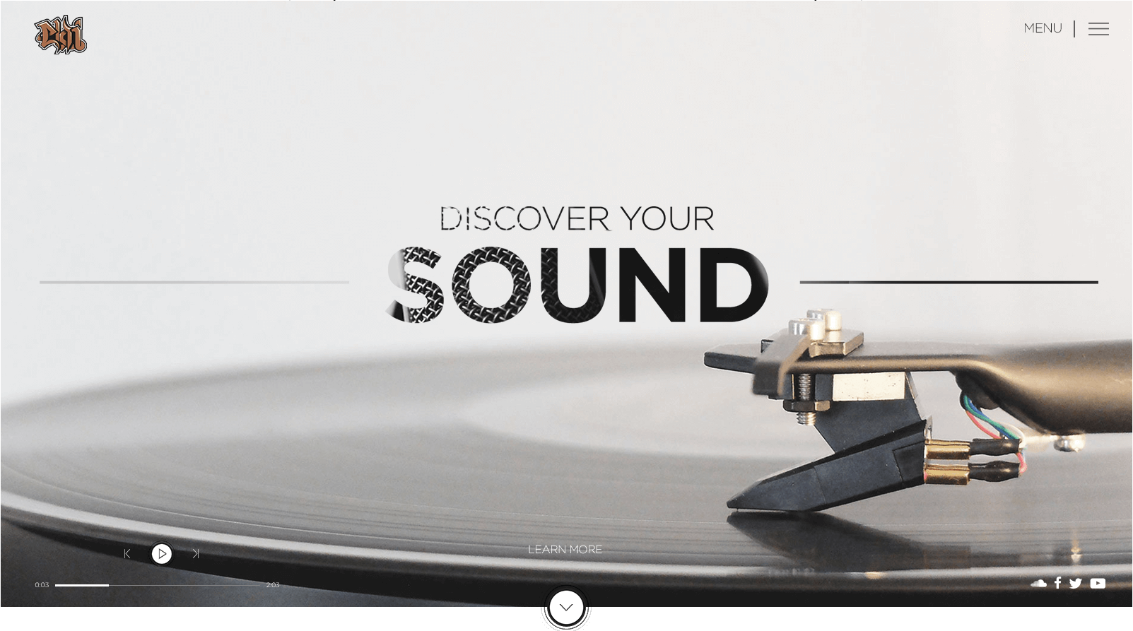 The site focuses on sales of merchandise and exposure to fresh music. From there each individual page presents its information without scrolling, unless you’re scrolling horizontal through the song list or are experiencing the site on mobile. This provides quick loading times and easy access to information on every page.