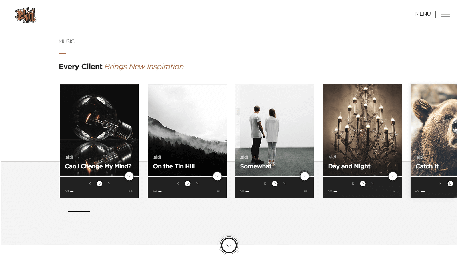 The key task with the site was to represent Eldi’s music by utilizing the tools that are used to produce it as the visuals for the brand. It was also a necessity to reduce the amount of scrolling and pages to implement a more convenient navigation from page to page and through the clients music portfolio. This same navigation needed to be convenient on every platform from phone to desktop.