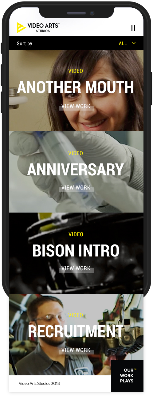 With clients ranging from Microsoft to the local brewery, Video Arts needed a major overhaul to their online experience. Once the brand was solidified, we started with a collaborative design sprint to figure out what would be valuable and accessible to our wide range of clients. The conclusion was to keep pages simple with little to no scrolling when possible. By emphasizing the smaller animations and details in the site and making information quickly accessible on all platforms we were able to relate to the broad client scope.